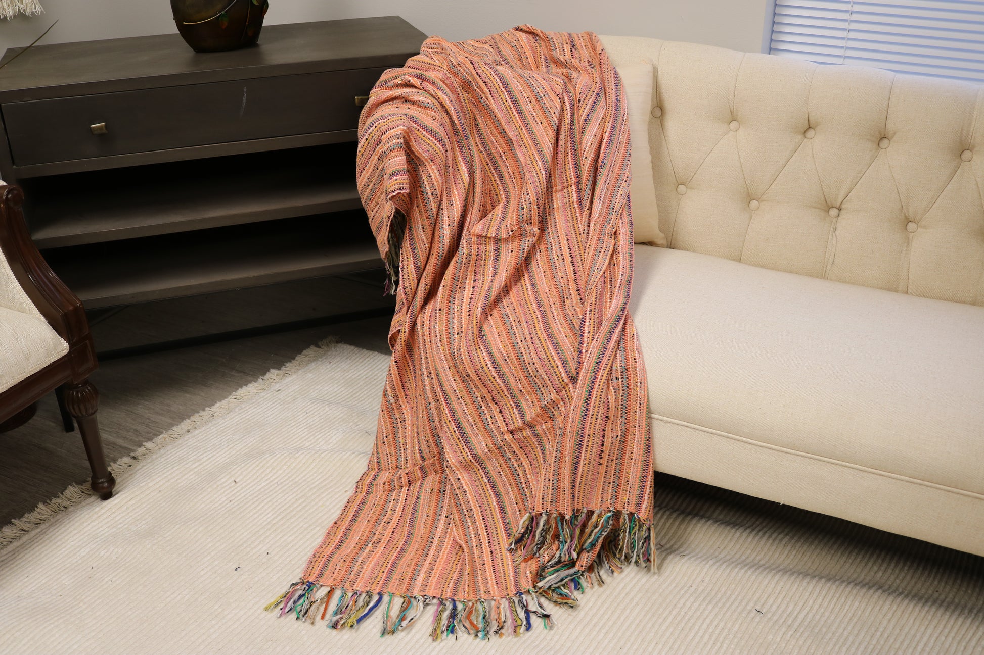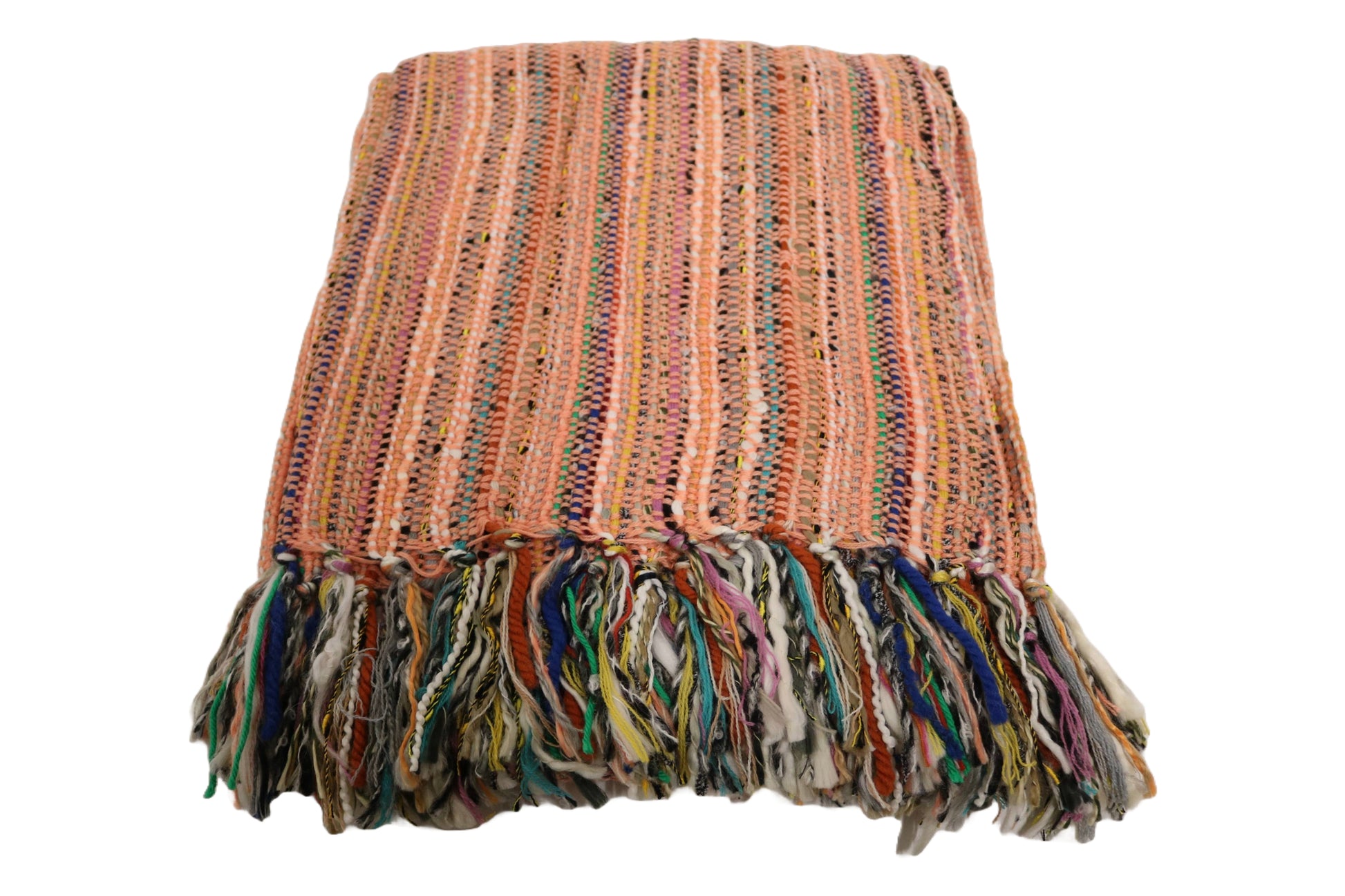 Handcrafted Wool & Cotton Throw Blanket Sunburst Peach