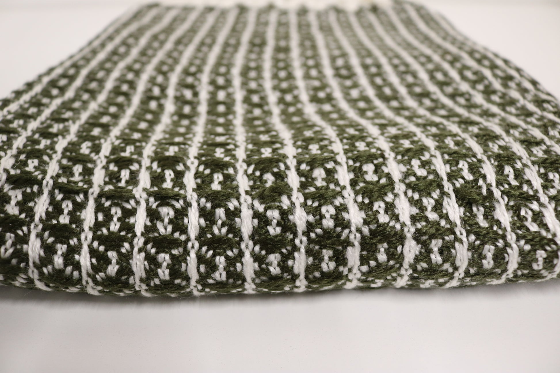 Handcrafted Wool & Cotton Throw Blanket Green