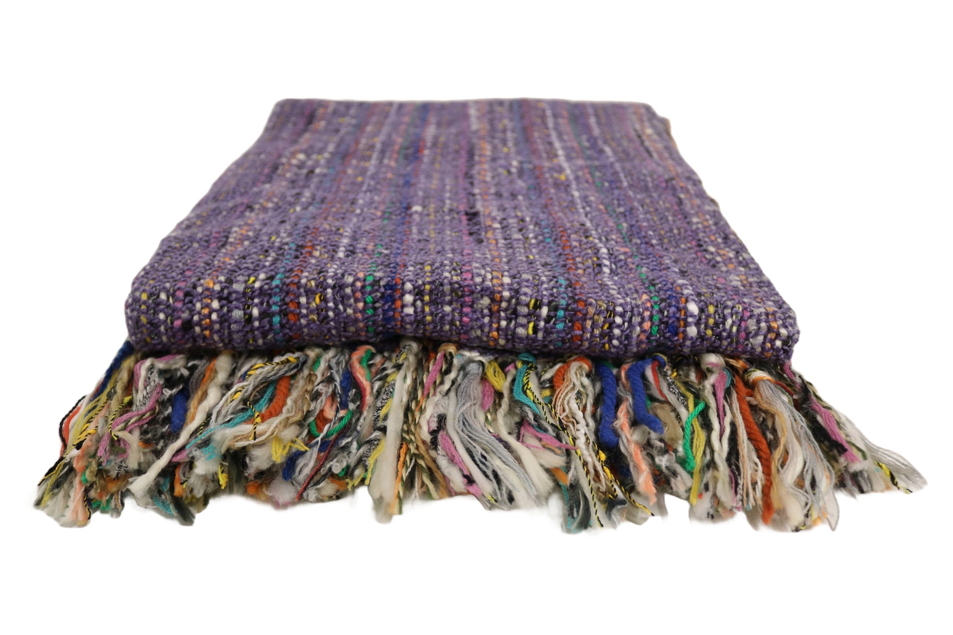 Handcrafted Wool & Cotton Throw Blanket Light Purple