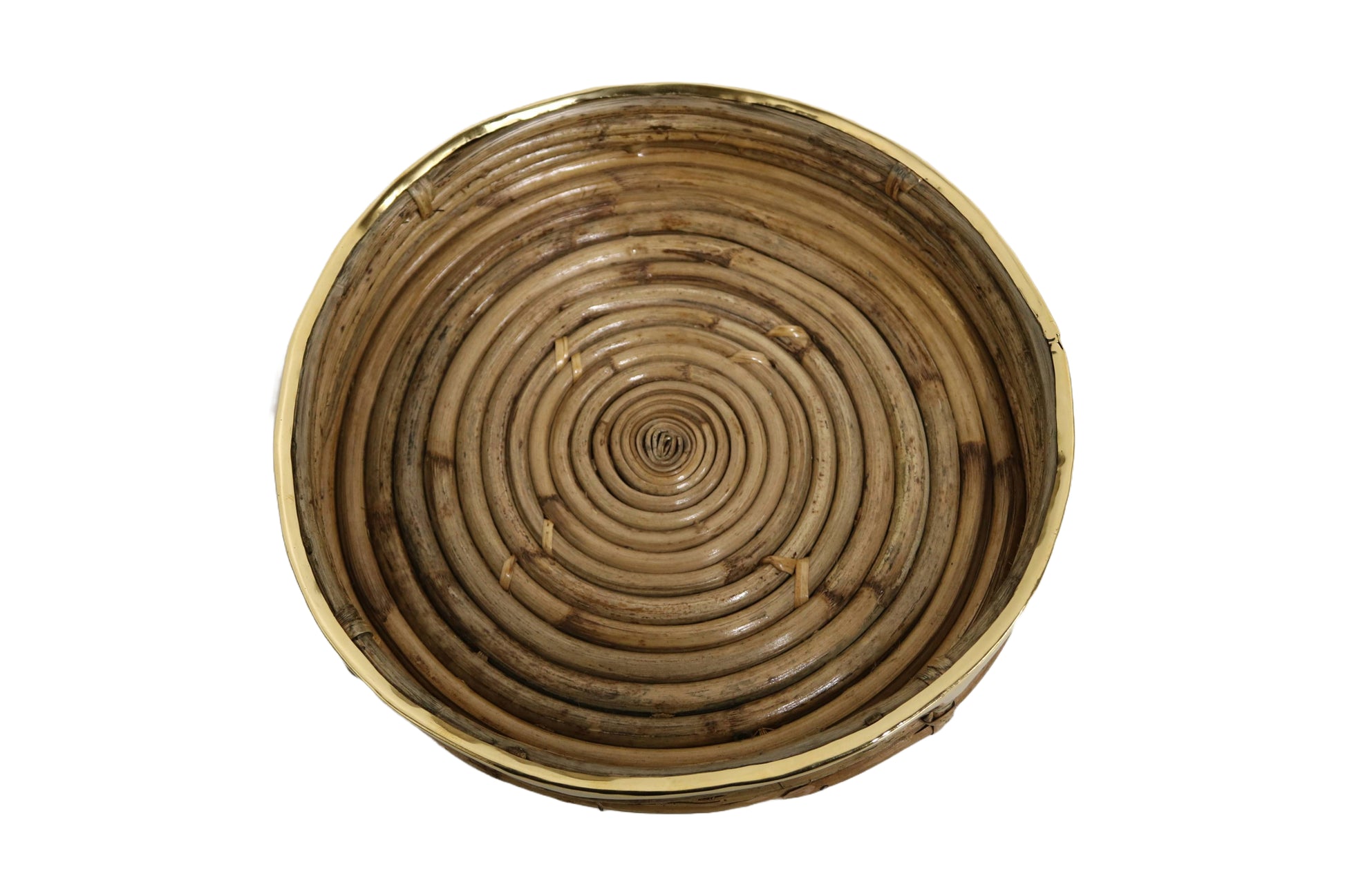 Home&Manor 12" Cane Round Tray with Brass Rim