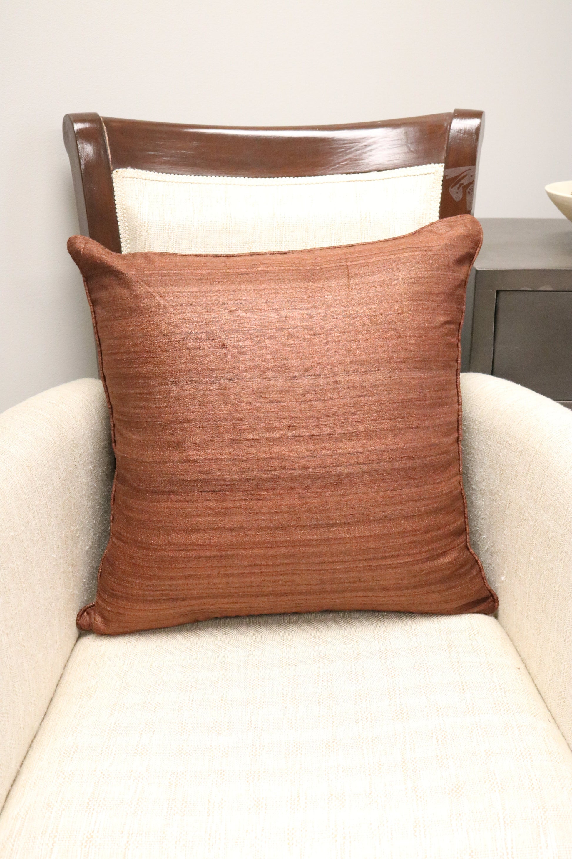 Raw Silk Throw Pillow 18" Dark Tan